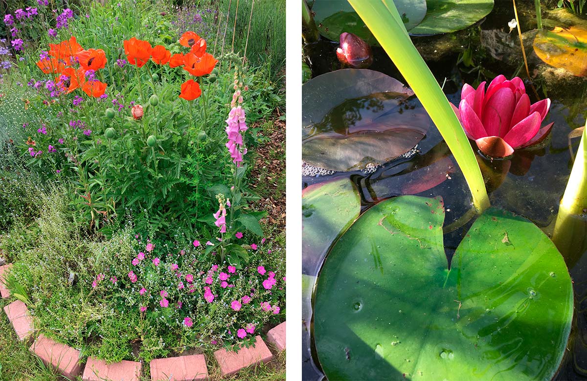 Wildfänge und Stauden paaren sich gerne. In einem nur kleinen Gewässer will die Teichrose für sich alleine glänzen.