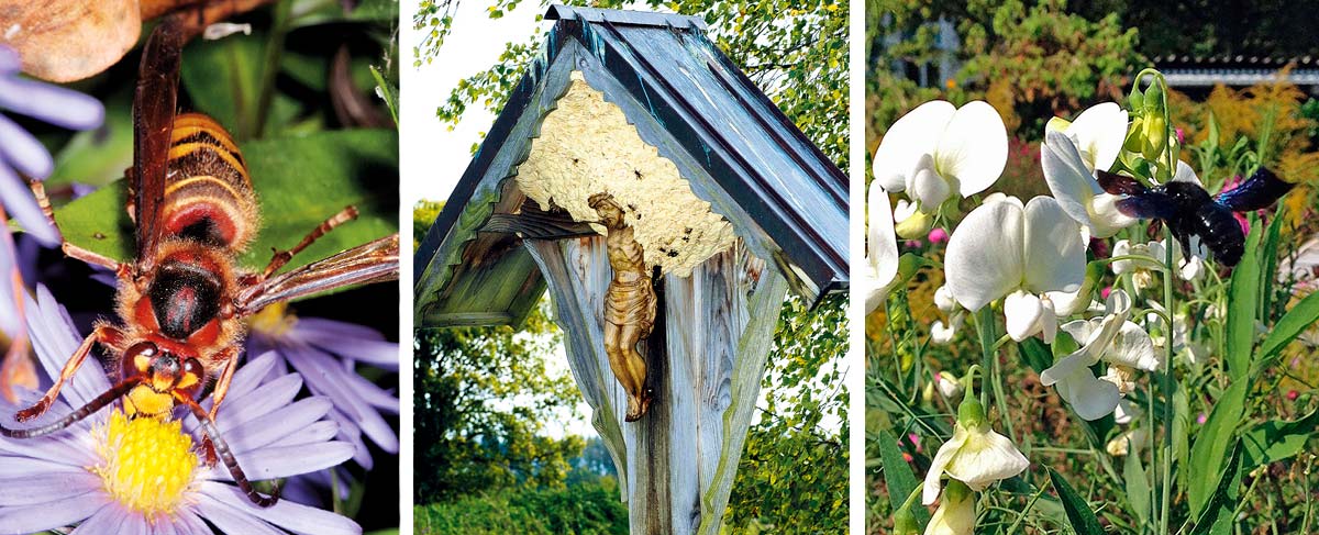 (Wespenbilder: Helmut Hintermaier, aus dem faszinierenden Buch „Bienen, Hummeln und Wespen im Garten und in der Landschaft“. Obst- und Gartenbauverlag, München)