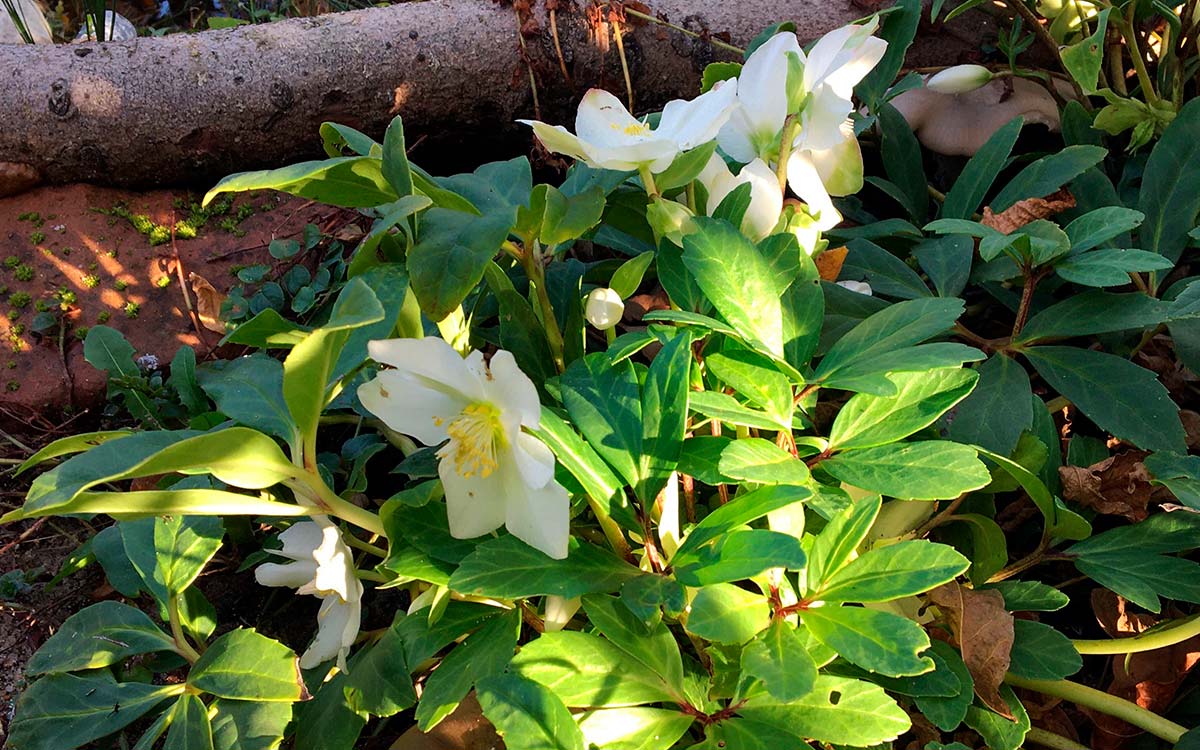 Auch die am Biotop gepflanzten Christrosen durfte ich in diesem magischen Herbst in Blüte bewundern. Und in der Stille der ringsum längst ‚winterfest‘ niedergeschnittenen Nachbargärten geriet ich mit ihnen ins Plaudern. Fast schien es als würden sie mit den Köpfchen nicken – dankbar um einen netten Dialog über ihre Wuchsfreude und grazile Schönheit mit ihren samtweißen Blütenkelchen und den pollenbesteckten filigranen Staubblättern. Und war da nicht ein zartes Wispern als mokierten sie sich über die angeberischen Farben der immer noch lodernden Astern am Staketenzaun.